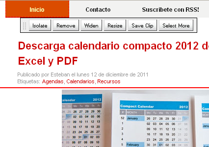 Luego de usarla detenidamente puedo decir que es bastante intuitiva: tan sólo debemos indicar una URL y dar click en «Start» para que se nos abra una nueva página en la cual vamos eliminando del diseño los elementos que no deseamos, generalmente zonas superiores (headers), paneles laterales (sidebars) y pies de página (footer) de los sitios web.