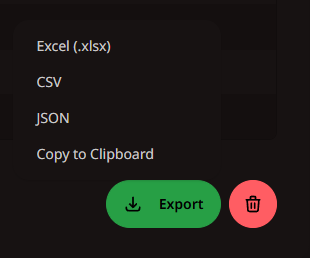 Una vez detectada la tabla, los datos pueden exportarse directamente a: