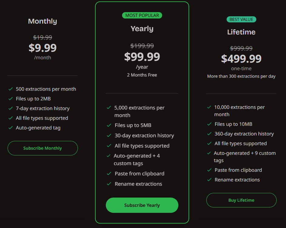 Tablextract.io cuenta con un plan gratuito, suficiente para probar la herramienta y evaluar su funcionamiento. Actualmente, este plan incluye: